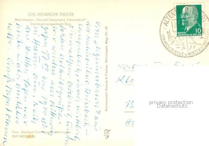 Steinbach_Langenbach Meininger Theater Steinbach_Langenbach postalisch gelaufen 1921-1965 Erhaltung siehe scans [NatalD47] NataID47