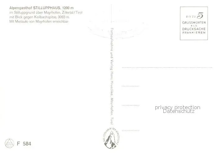 Stilluphaus_1200m_Stilluptal_Mayrhofen_Zillertal_AT Innen. u. Aussenansicht m. Zillertal-Ansicht postalisch nicht gelaufen nach 1965 Erhaltung siehe scans [LiesaD40] LiesID40