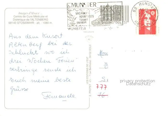 Stossweier_Stosswhir_Alsace Centre de Cure Medicale et Dietetique de l’Altenberg Vue aerienne postalisch gelaufen 1997 Erhaltung siehe scans [WerneD78] WernPID7