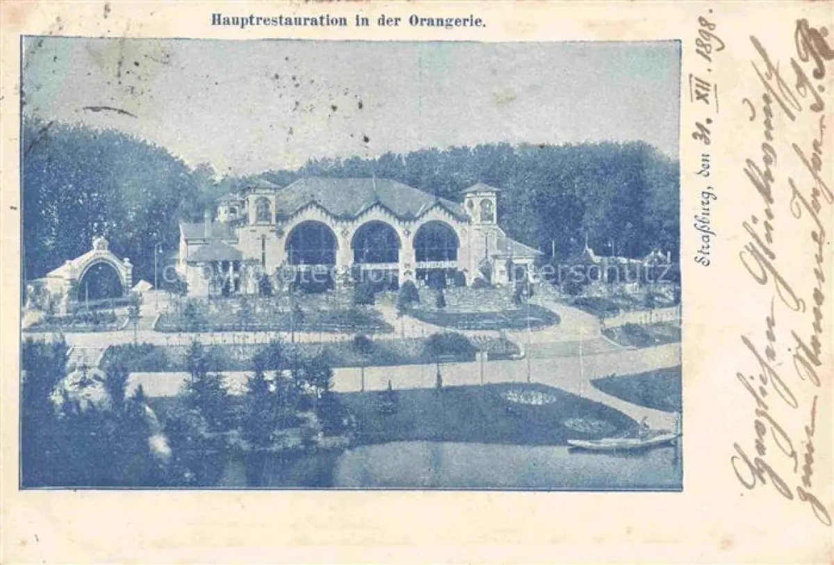 alte Postkarte Strasbourg Strassburg 67 Bas-Rhin Hauptrestauration in der Orangerie Deutsche Reichspost postalisch gelaufen Erhaltung siehe scans [FriedD77]