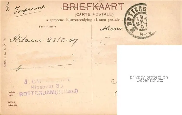Strassenbahn Coolsingel Rotterdam postalisch gelaufen 1907 Erhaltung siehe scans [PaolaD17] PaolPID1