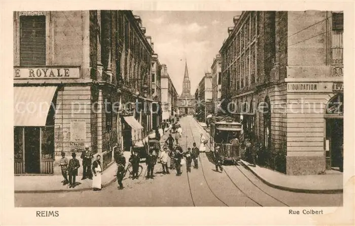 AK / Ansichtskarte Strassenbahn Reims Rue Colbert Strassenbahn