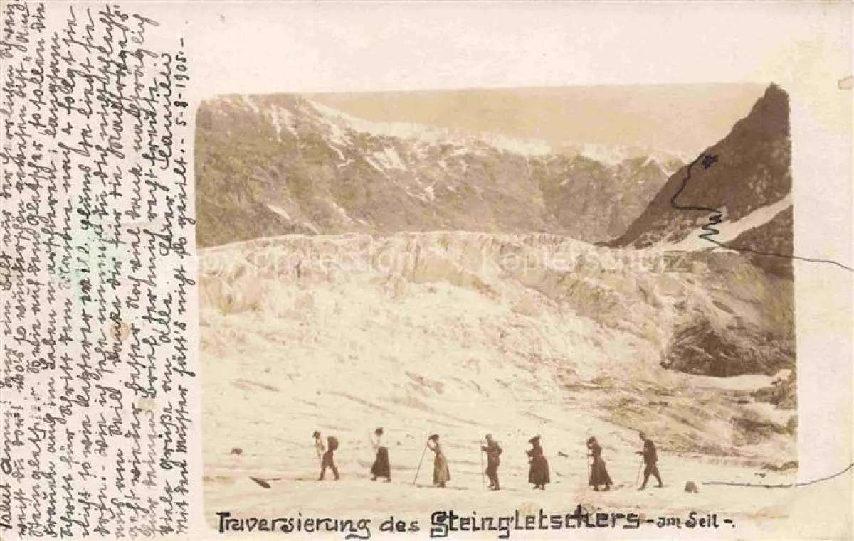 alte Postkarte Susten Innertkirchen Traversierung des Steingletschers am Seil postalisch gelaufen Erhaltung siehe scans [FriedD77]