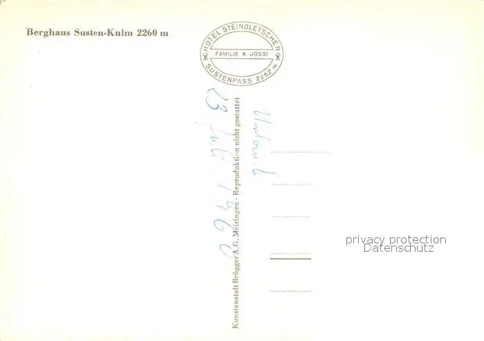 Susten_Kulm_BE Berghaus Gaststaette Kamin Susten_Kulm_BE postalisch nicht gelaufen 1960 Erhaltung siehe scans [FriedD77] Frierer