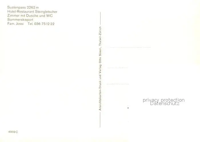 Sustenpass Hotel Restaurant Steingletscher Sustenpass postalisch nicht gelaufen nach 1965 Erhaltung siehe scans [FriedD77] Frierer