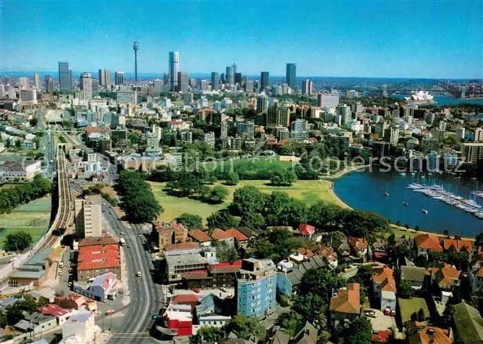 AK / Ansichtskarte Sydney_New_South_Wales View from Darling Point overlooking Rushcutter Bay the Eastern Suburbs railway and the skyline of Sydney Sydney_New_South_Wales