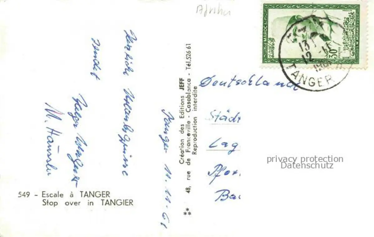 alte Postkarte TANGER Tangier Tangiers Maroc Escale a Tanger Stop over postalisch gelaufen Erhaltung siehe scans [WerneD78]