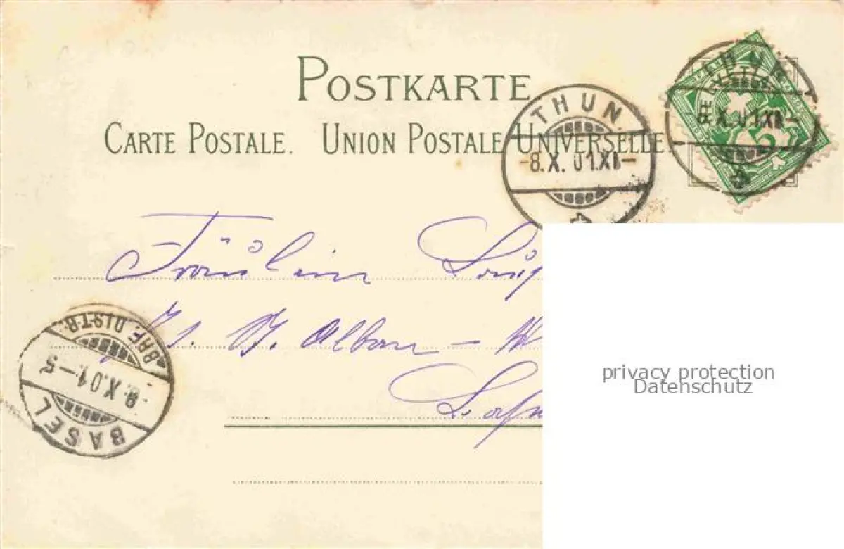 14116819 THUN Thoune BE Panorama postalisch gelaufen Erhaltung siehe scans [FriedD77] alte Postkarte Frie Katcode 11470060240806