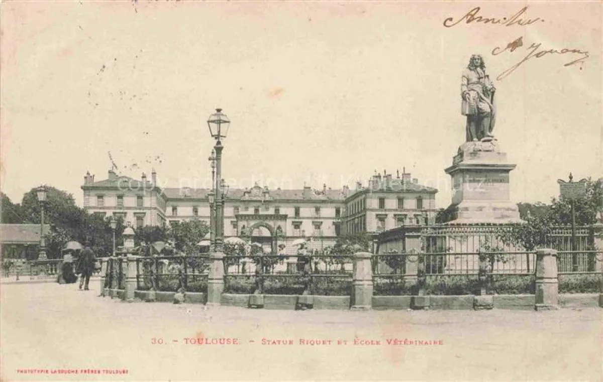 carte postale TOULOUSE 31 Haute-Garonne Statue Riquet et Ecole Veterinaire postalisch gelaufen Erhaltung siehe scans [IrynaD87]