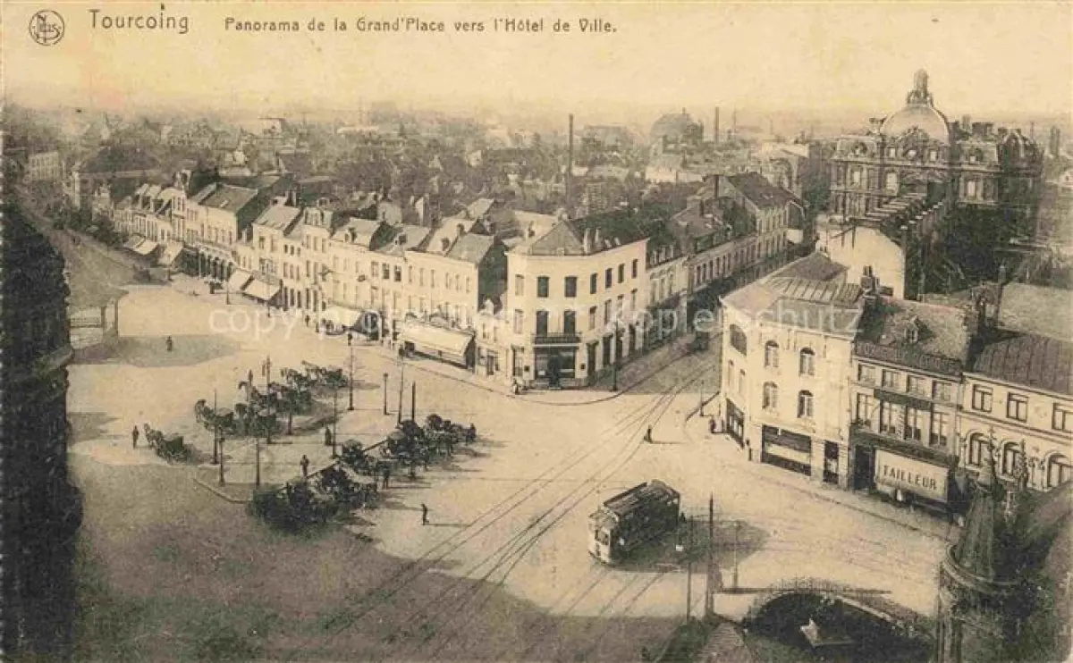 14080318 TOURCOING 59 Nord Panorama de la Grande Place vers l'Hôtel de Ville postalisch gelaufen Feldpostexpedition (Stempel) Erhaltung siehe scans [FriedD77] Feldpostexpedition (Stempel) alte Postkarte Frie Katcode 11170059559599