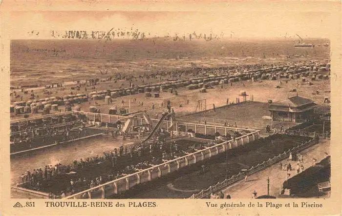 TROUVILLE_-SUR-MER_14_Calvados Vue generale de la Plage et la Piscine postalisch gelaufen 1921-1965 Erhaltung siehe scans [WerneD78] WernPID7