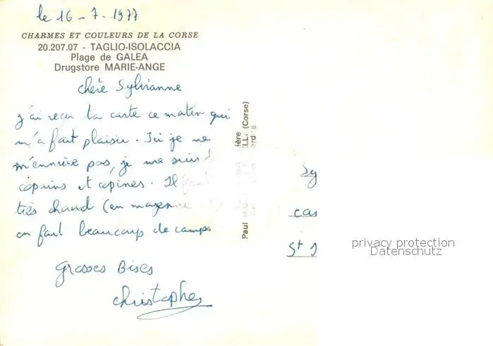 Taglio-Isolaccio Plage de Galea Drugstore Marie Ange Vue aerienne Taglio-Isolaccio postalisch nicht gelaufen 1977 Erhaltung siehe scans [WerneD78] WernPID7