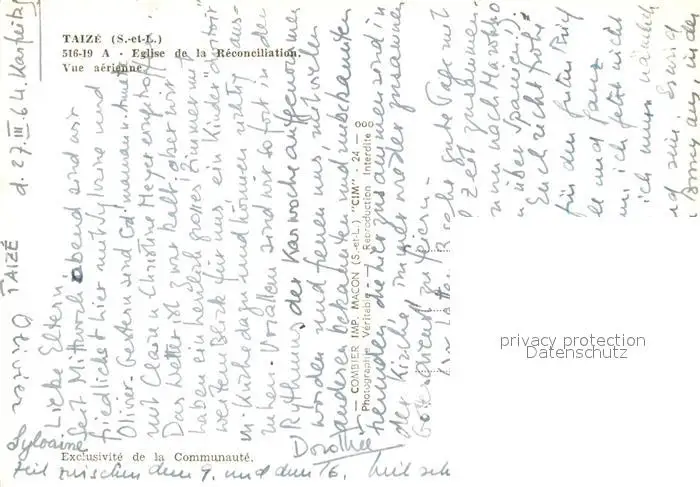 Taize_Saone-et-Loire Vue Aerienne Eglise de la Reconciliation Taize Saone-et-Loire postalisch nicht gelaufen 1964 Erhaltung siehe scans [PaolaD17] PaolPID1