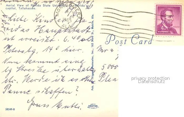 Tallahassee Aerial view of Florida State University postalisch gelaufen 1965 Erhaltung siehe scans [FriedD77] Frierer