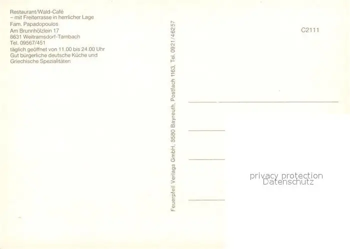 Tambach_Weitramsdorf Waldcafe Restaurant Tambach Tambach Weitramsdorf postalisch nicht gelaufen nach 1965 Erhaltung siehe scans [KathaD81] Kathoren