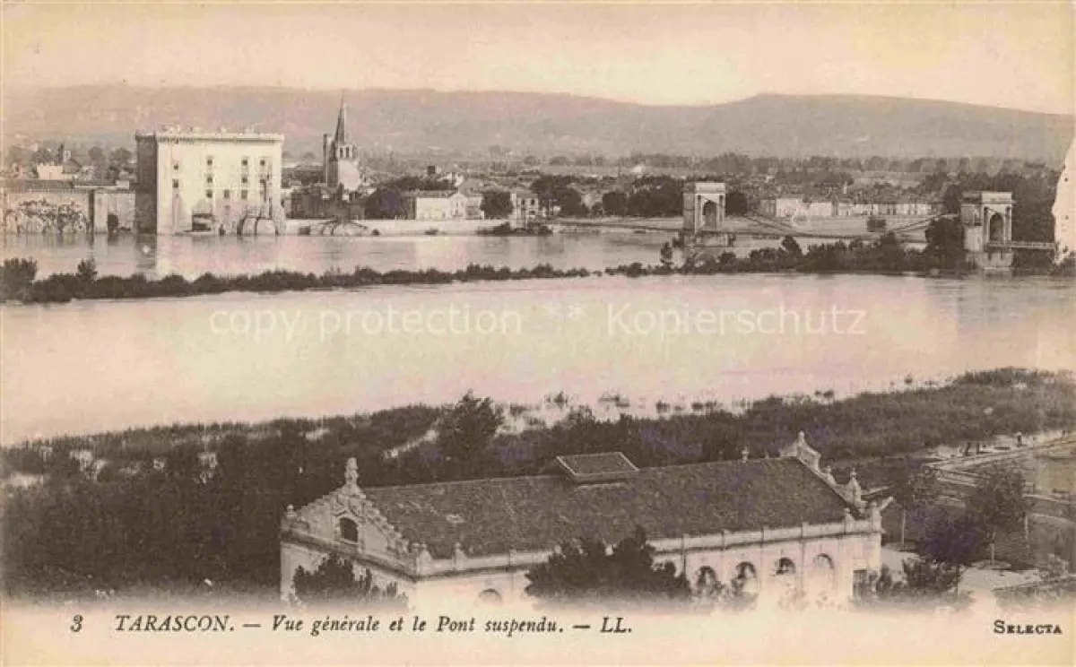 14106741 Tarascon ARLES 13 Bouches-du-Rhone Vue generale et le Pont suspendu postalisch nicht gelaufen Erhaltung siehe scans [WerneD78] Wern Katcode 11170013213108