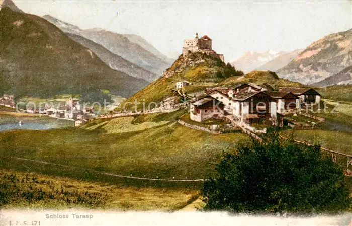 Tarasp Panorama Blick zum Schloss Tarasp postalisch gelaufen 1909 Erhaltung siehe scans [FriedD77] Frierer