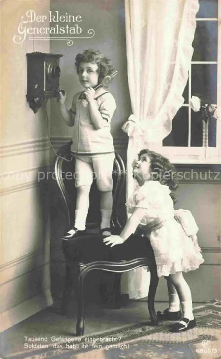 AK / Ansichtskarte Telefon Telephone-- Der kleine Generalstab Kinder