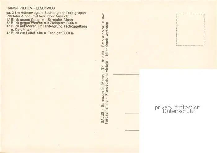 Texelgruppe_Dolomiti_IT Hans Frieden Felsenweg Hochmut Leiteralm Sarntaler Alpen Zielspitze Meranblick Leiteralm und Tschigat postalisch nicht gelaufen 1921-1965 Erhaltung siehe scans [WerneD78] WernPID7