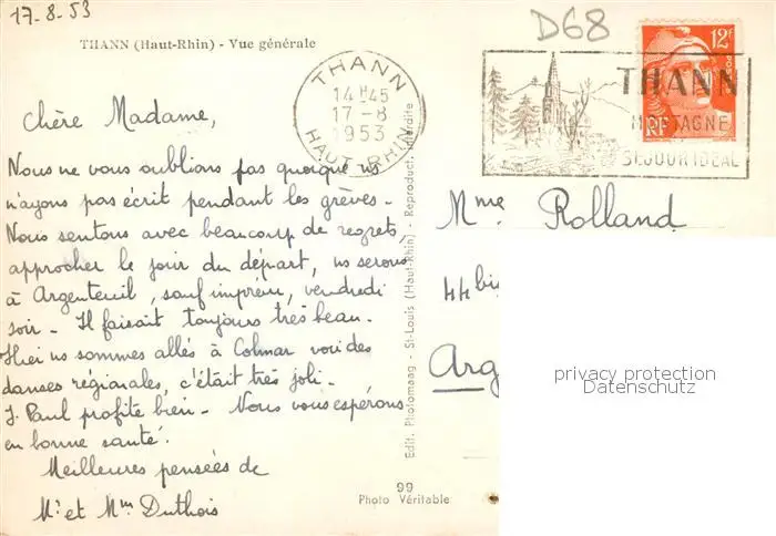 Thann__68_Alsace Vue générale et les Vosges postalisch gelaufen 1953 Erhaltung siehe scans [FriedD77] Frierer