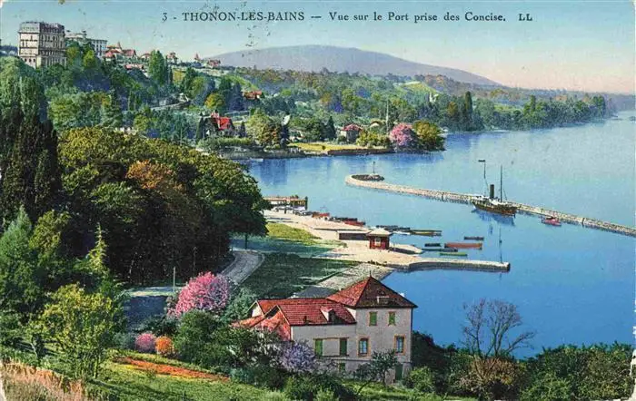 Thonon-les-Bains_74_Haute-Savoie Vue sur le port prise des Concise postalisch gelaufen 1925 Erhaltung siehe scans [FriedD77] Frierer