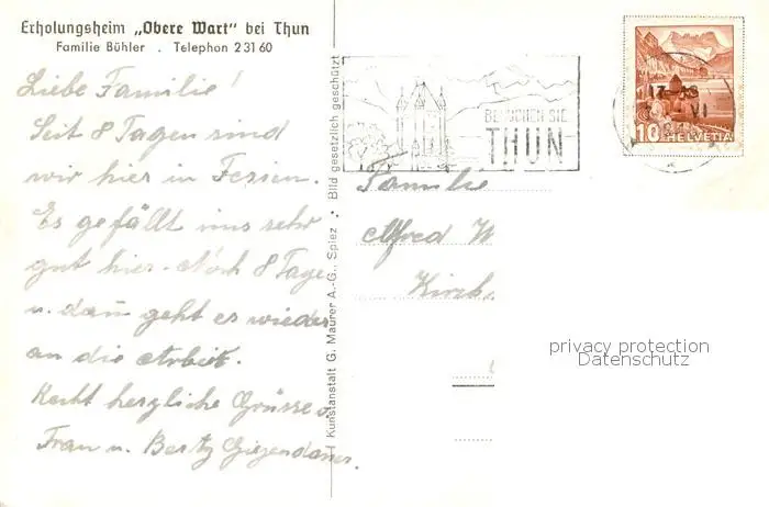 Thun_BE Erholungsheim Obere Wart Thun_BE postalisch gelaufen 1921-1965 Erhaltung siehe scans [FriedD77] Frierer
