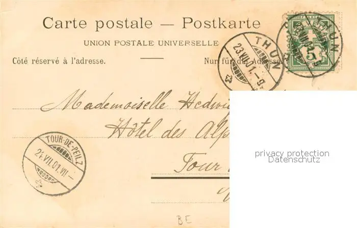 Thun_BE Panorama mit Blick zu den Alpen Thun_BE postalisch gelaufen 1901 Erhaltung siehe scans [FriedD77] Frierer