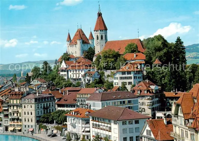 AK / Ansichtskarte Thun_BE Stadtblick mit Kirche und Schloss Thun_BE
