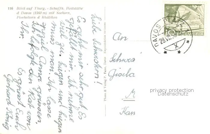Thurgau_Schweiz mit Schaffhausen Heilstaette Davos mit Seehorn Pischahorn und Rhaetikon Thurgau Schweiz postalisch gelaufen 1953 Erhaltung siehe scans [WerneD78] WernPID7