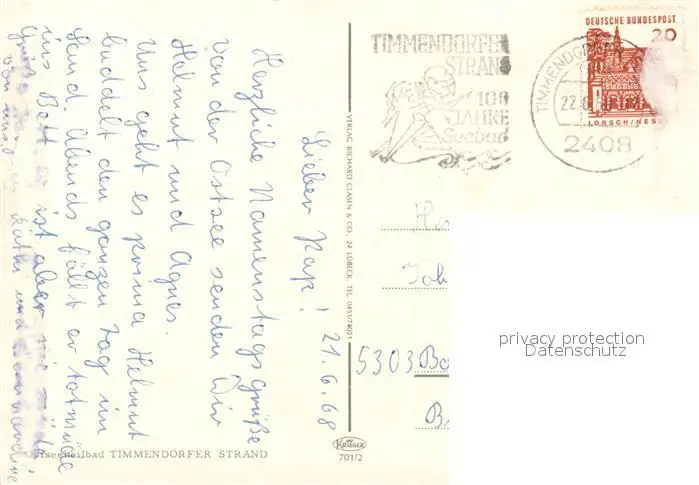 Timmendorfer_Strand Ostseeheilbad Strand Timmendorfer_Strand postalisch gelaufen 1968 Erhaltung siehe scans [FriedD77] Frierer