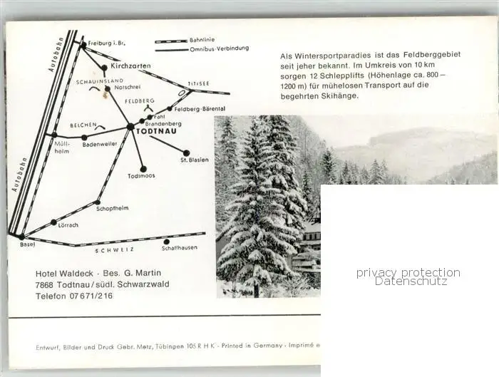 Todtnau Hotel Waldeck Todtnau postalisch nicht gelaufen nach 1965 Werbekarte (keine Postkarte) Erhaltung siehe scans [WerneD78] Werbekarte (keine Postkarte) WernPID7