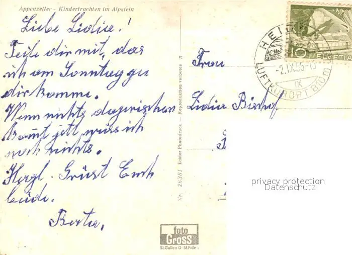Trachten_Schweiz Appenzell Kinder Alpstein postalisch gelaufen 1955 Erhaltung siehe scans [PaolaD17] PaolPID1