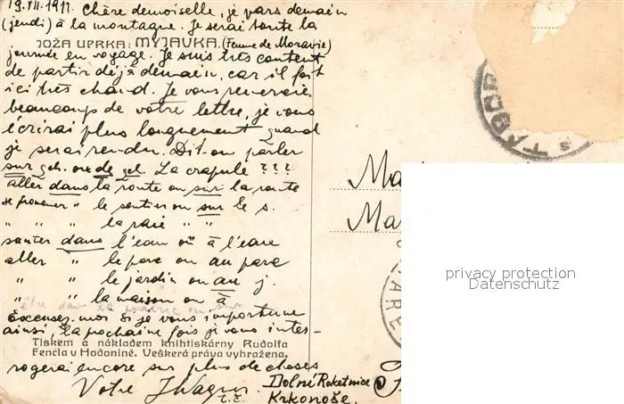 Trachten_Slowakei Myjava Joza Uprka postalisch gelaufen 1911 Erhaltung siehe scans [PaolaD17] PaolPID1