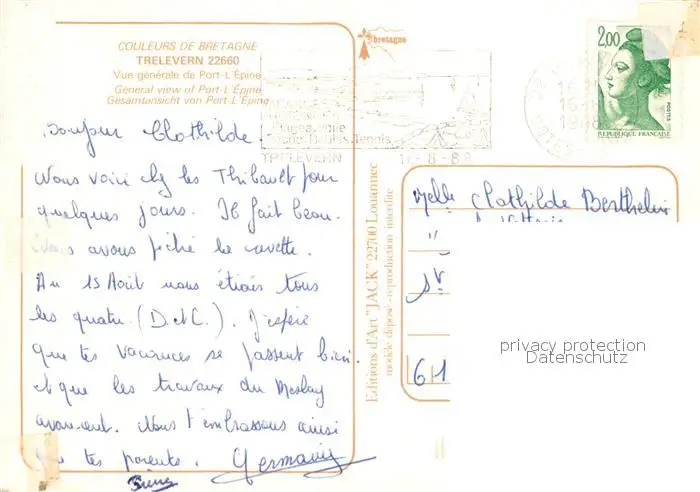 Trelevern Vue generale aerienne de Port l'Epine Trelevern postalisch gelaufen 1988 Erhaltung siehe scans [WerneD78] WernPID7