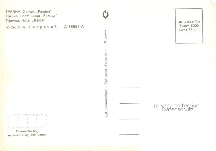 Trjawna Hotel Raliza postalisch nicht gelaufen 1990 Erhaltung siehe scans [FriedD77] Frierer