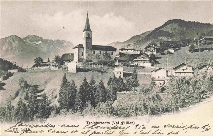 14061406 Troistorrents Monthey VS Panorama mit Kirche postalisch gelaufen Erhaltung siehe scans [WerneD78] alte Postkarte Wern Katcode 11470230725500