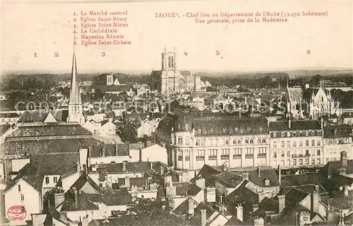 AK / Ansichtskarte Troyes_Aube Chef lieu du Departement de l’Aube Vue generale prise de la Madeleine Troyes Aube