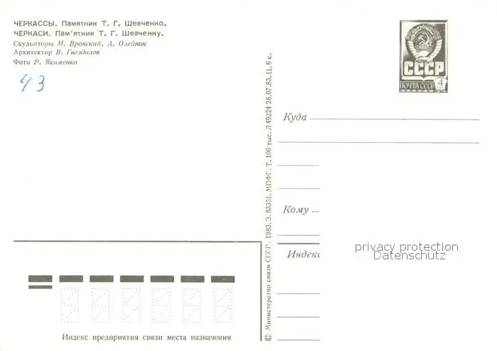 Tscherkassy Denkmal T.H.Schewtschenko Tscherkassy postalisch nicht gelaufen nach 1965 Erhaltung siehe scans [IrynaD87] Iryn PID