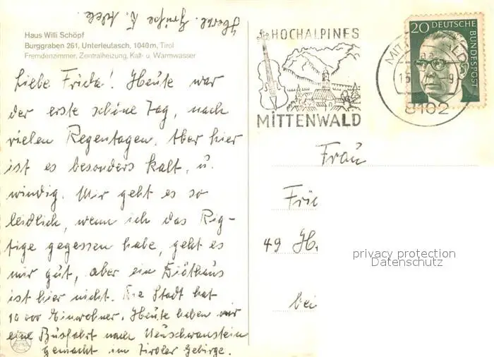 Unterleutasch Haus Willi Schoepf Unterleutasch postalisch gelaufen 1972 Erhaltung siehe scans [WerneD78] WernPID7