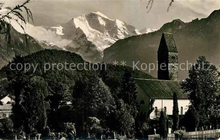 AK / Ansichtskarte Unterseen mit Kirche und Jungfrau Unterseen