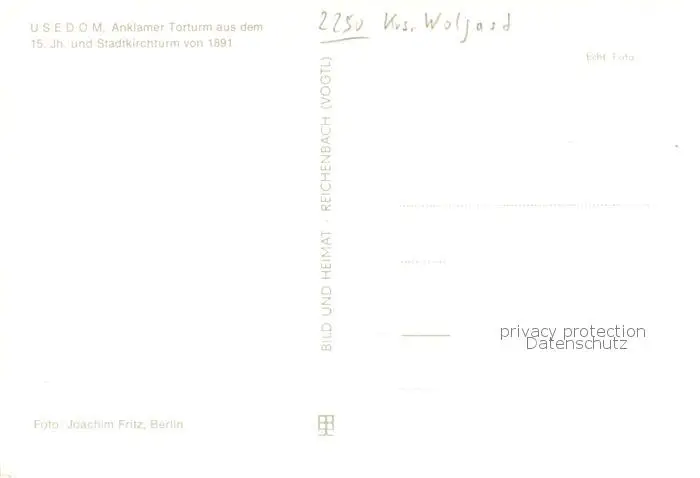 Usedom Anklamer Torturm und Stadtkirchturm Usedom postalisch gelaufen nach 1965 Erhaltung siehe scans [FriedD77] Frierer