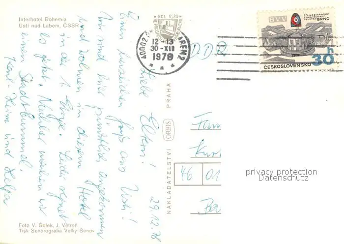 Usti_nad_Labem Interhotel Bohemia Usti_nad_Labem postalisch gelaufen 1978 Erhaltung siehe scans [FriedD77] Frierer
