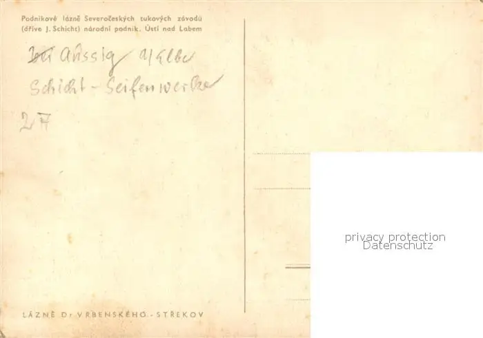 Usti_nad_Labem Severoceskych tukovych zavodu narodni podnik Schicht Seifenwerke Usti_nad_Labem postalisch nicht gelaufen 1921-1965 Erhaltung siehe scans [FriedD77] Frierer