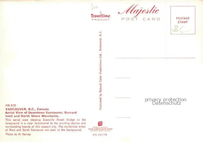 14060513 VANCOUVER BC Canada Aerial view of downtown Burrard Inlet and North Shore Mountains postalisch nicht gelaufen Fliegeraufnahme Erhaltung siehe scans [FriedD77] Fliegeraufnahme Frie Katcode 14110