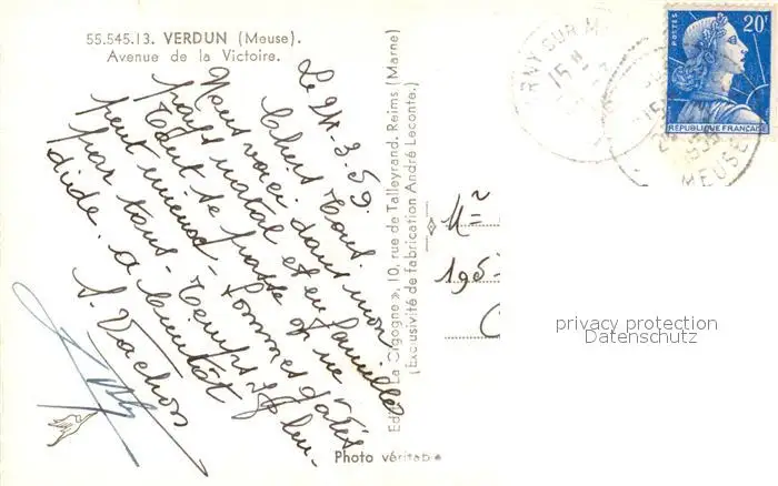 VERDUN_Meuse Avenue de la Victoire Verdun Meuse postalisch gelaufen 1959 Erhaltung siehe scans [FriedD77] Frierer