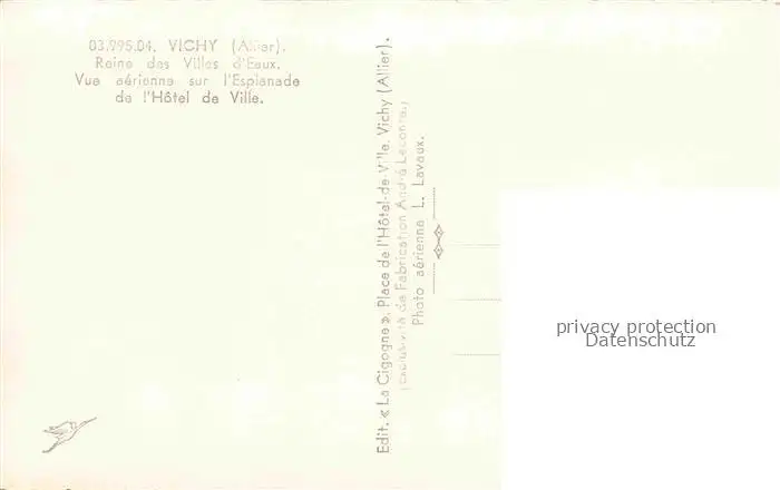 14061580 VICHY 03 Allier Reine des Villes d'Eaux Esplanade de l'Hôtel de Ville vue aérienne postalisch nicht gelaufen Fliegeraufnahme Erhaltung siehe scans [FriedD77] Fliegeraufnahme Frie Katcode 11170003303310