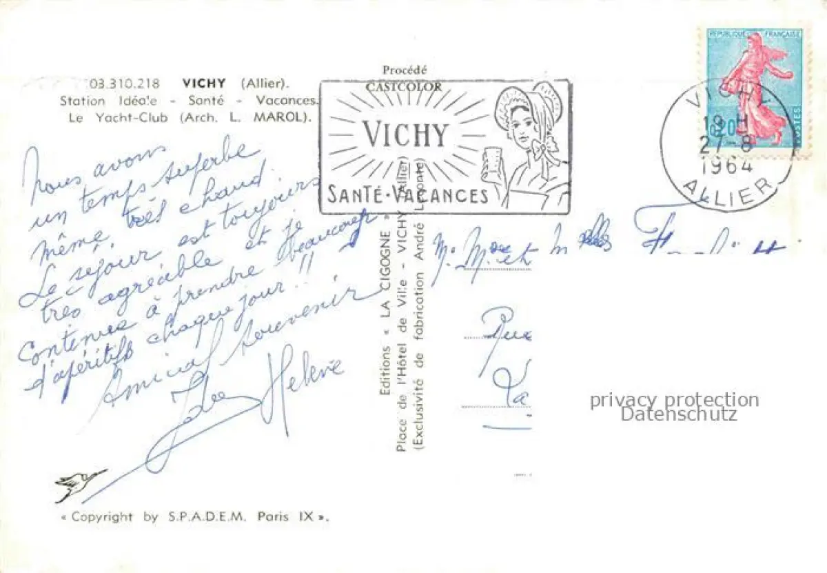 14102379 VICHY 03 Allier Station Ideale Sante Vacances Le Yacht Club postalisch gelaufen Erhaltung siehe scans [WerneD78] carte postale Wern Katcode 11170003303310