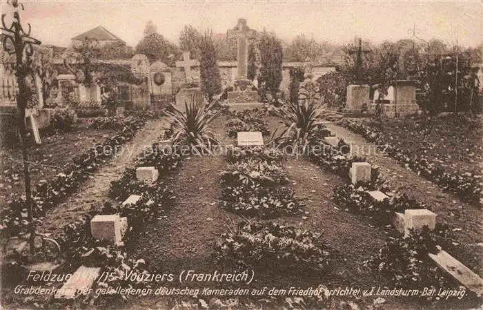 AK / Ansichtskarte VOUZIERS Aisne 08 Ardennes Feldzug 1914/15 Friedhof Grabdenkmal der gefallenen deutschen Kameraden von Landsturm-Bat. Leipzig