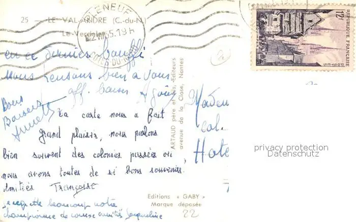Val-Andre Le Verdelet Val-Andre postalisch gelaufen 1955 Erhaltung siehe scans [KathaD81] Kathoren