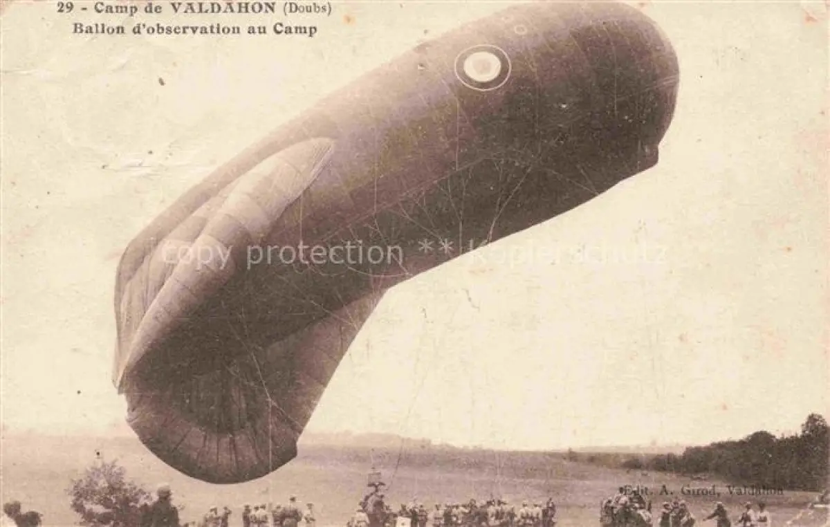 alte Postkarte Valdahon Le Valdahan Besancon 25 Doubs Ballon d'observation au camp postalisch gelaufen Erhaltung siehe scans [FriedD77]